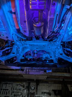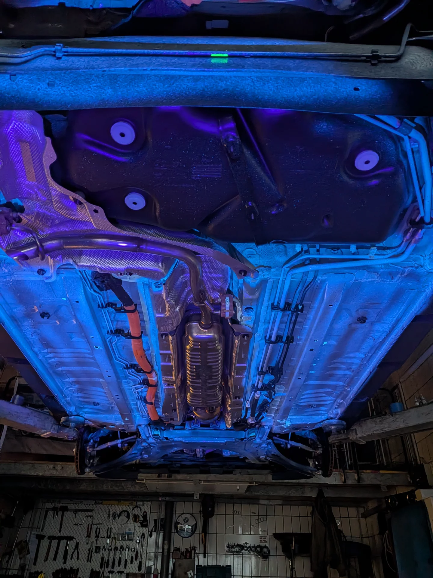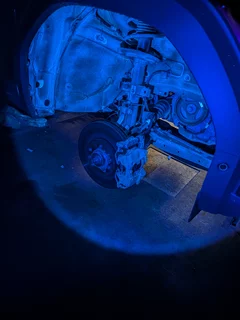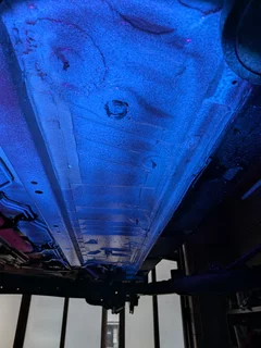 Unterboden mit transparentem Innotec® Wax mit UV Lampe sichtbar gemacht